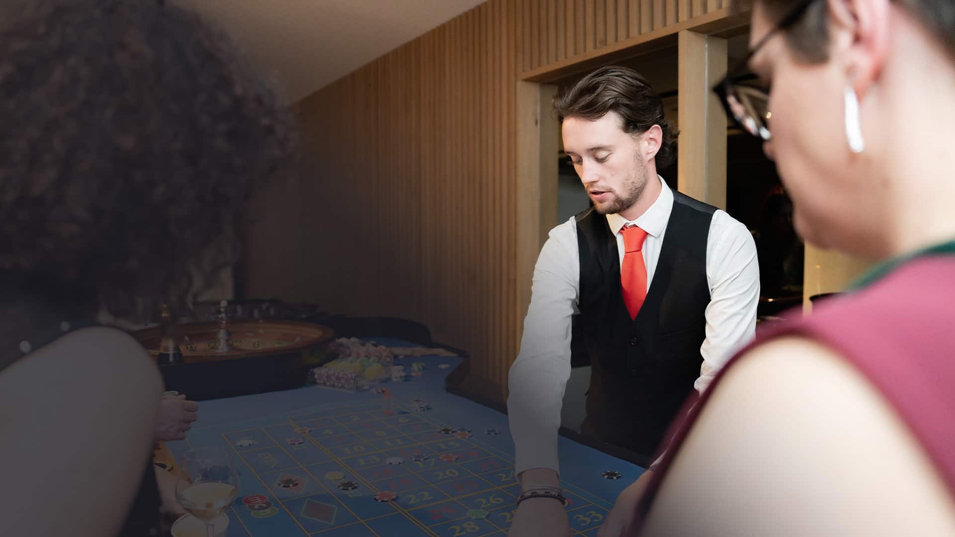 De eerste verdieping van het pand werd volledig ingericht als mini-casino. Onze professionele croupiers zorgden voor begeleiding met flair en energie, waardoor iedereen van beginner tot ervaren speler zich direct thuis voelde. De combinatie van klassieke speeltafels en vrolijke slotmachines gaf de avond precies de juiste mix van spanning en plezier. De medewerkers van Eskofin genoten van een exclusieve, maar toch laagdrempelige casino-ervaring. Roulette en blackjack zorgden voor interactie, terwijl het rad van fortuin en de slotmachines extra fun toevoegden. Met slechts 24 gasten was er voor iedereen voldoende ruimte en persoonlijke aandacht.
