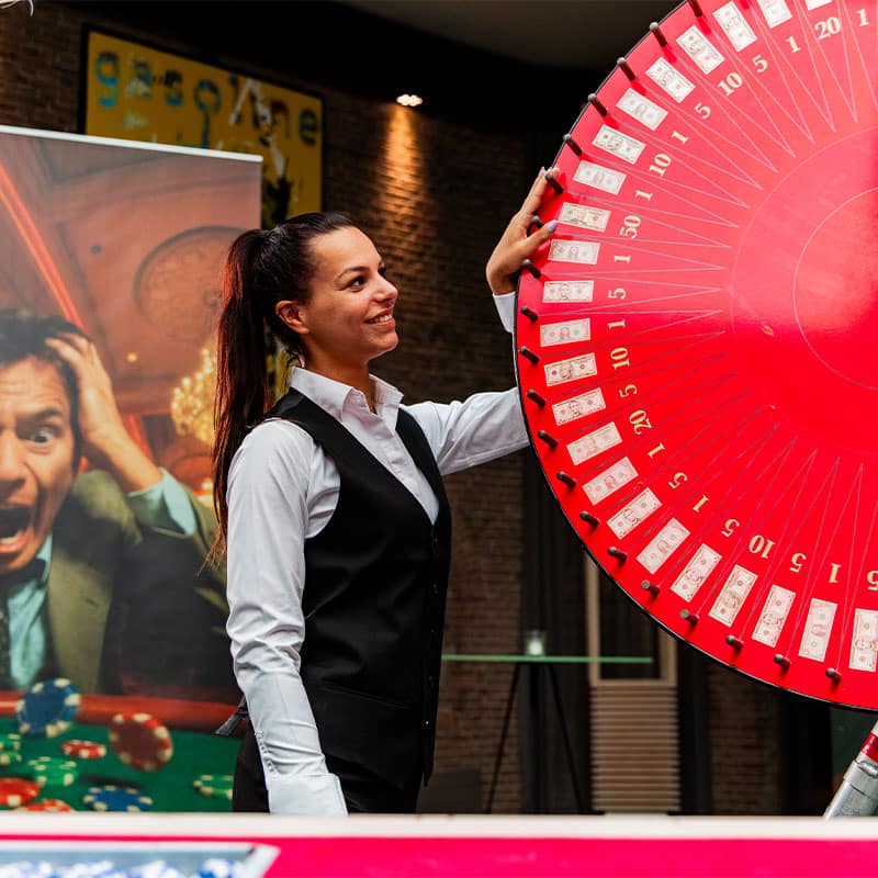 Nee. Bij ons draait alles om plezier: er wordt nooit met echt geld gespeeld. Gasten krijgen fiches en speeldollars om in te zetten en ervaren zo de spanning van het rad, zonder risico’s. Want eerlijk is eerlijk: geld verliezen op een feestavond is nooit leuk.